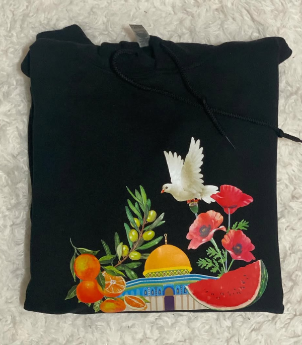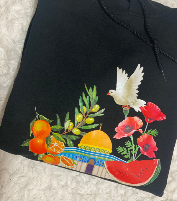 Wear a statement of culture, resilience, and hope with this beautifully detailed graphic hoodie. The design brings together iconic imagery in a lush, colorful composition that stands out against the classic black fabric.